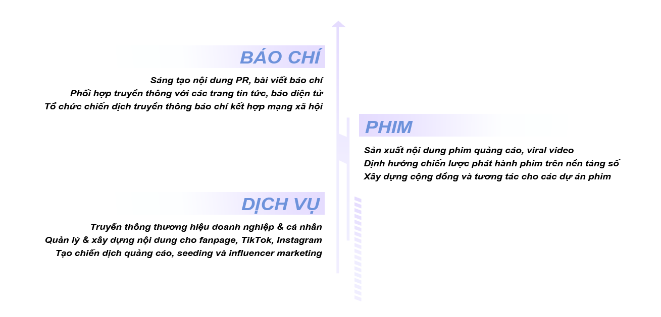 Chúng tôi cung cấp giải pháp truyền thông số toàn diện, từ chiến lược nội dung đến sản xuất và phân phối, giúp doanh nghiệp và thương hiệu tiếp cận khách hàng hiệu quả trên các nền tảng mạng xã hội.